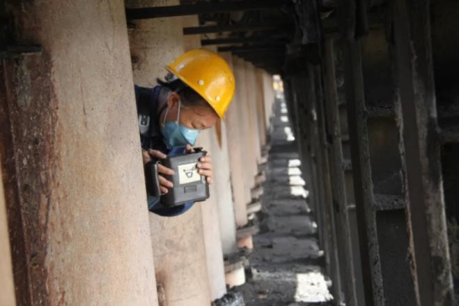 炉顶测温时,李萍红手拿测温仪,一名配合的员工将焦炉顶1斤重的铁看火孔盖用铁钩钩开,一股热浪就喷涌而出,炉内的温度在上千度,喷出来的热浪,稍稍不注意,就会伤到人。1792个孔,分成56排,要分2次测完,给出的测温时间是1个小时,焦炉顶测温一个星期要开展2次。干这一行,必须心细,手艺精湛。而新高焦化只有班长江辉华与李萍红是老测温工。