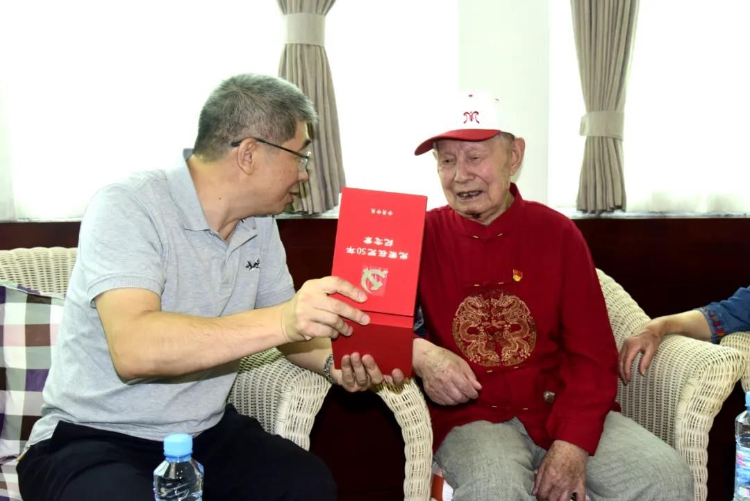 在太阳成集团tyc,贺老身穿喜庆的红色衣服,虽然年事已高,但精神矍铄,看到这么多人给自己庆祝生日,贺老脸上露出了幸福的笑容。揭小健为贺老挂上了“光荣在党50年”纪念章,与贺老一起缅怀过去的光辉岁月,共话革命精神的传承,并悉心询问贺老的生活情况和身体状况,希望贺老多多保重身体,衷心祝愿他健康长寿。看到贺老的精神状态不错,揭小健欣慰地表示,抗战老同志、老干部是党和国家的功臣,也是企业的宝贵财富,不论是在战争年代,还是在新中国建设时期,正因为有了他们的无私奉献、艰苦奋斗,才有了今天幸福美好的生活,他们为江投集团的建设发展作出巨大的贡献,集团的发展能有今天,凝聚了老干部老党员辛勤的汗水。作为后继者,我们要继承和发扬老党员们的光荣传统,以更加饱满的热情投身到党的事业建设当中,再接再厉,矢志不渝守初心、奋发有为担使命,为江投集团高质量发展贡献力量。